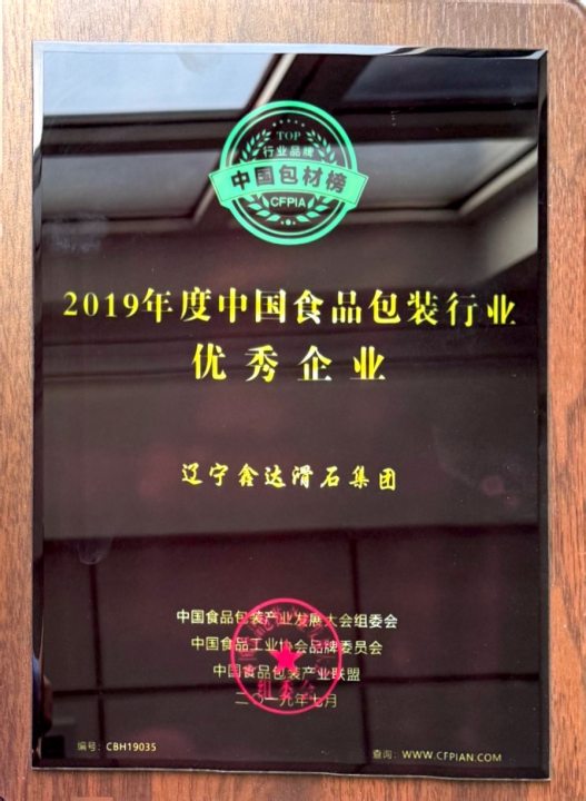 2019年度中国食品包装業界優秀企業―シンダータルク