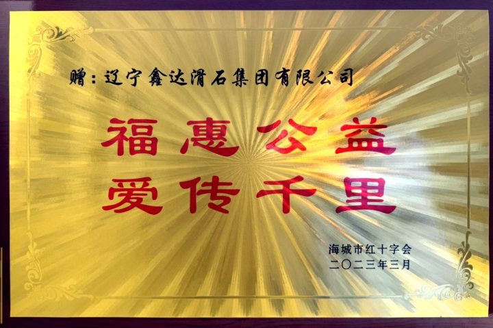 海城市赤十字協会からシンダル滑石「福慧公益愛伝千里」